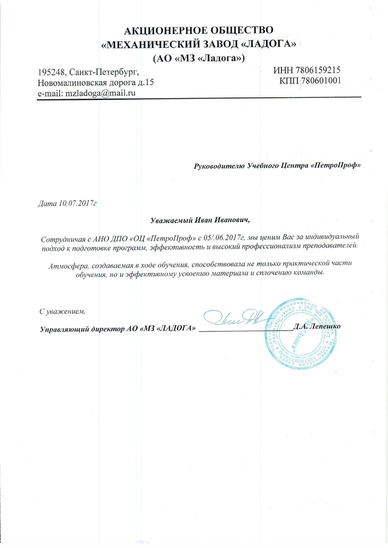 Хочу выразить благодарность за превосходную организацию учебного процесса. Обучение прошло на «отлично»: даже в дистанционном формате все было предельно ясно и доступно. Лекции и материалы составлены логично, сложные темы объяснялись четко и с примерами. Эти курсы действительно дают качественные знания и оставляют исключительно положительные впечатления. Смело рекомендую всем коллегам!